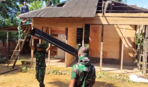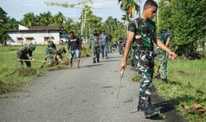 Abdya– Sejumlah anggota Babinsa Korami 07/Babahrot Kodim 0110/Abdya Koptu Johan Sapri bersama warga Desa Blang Dalam Kecamatan Babahrot gotong royong…