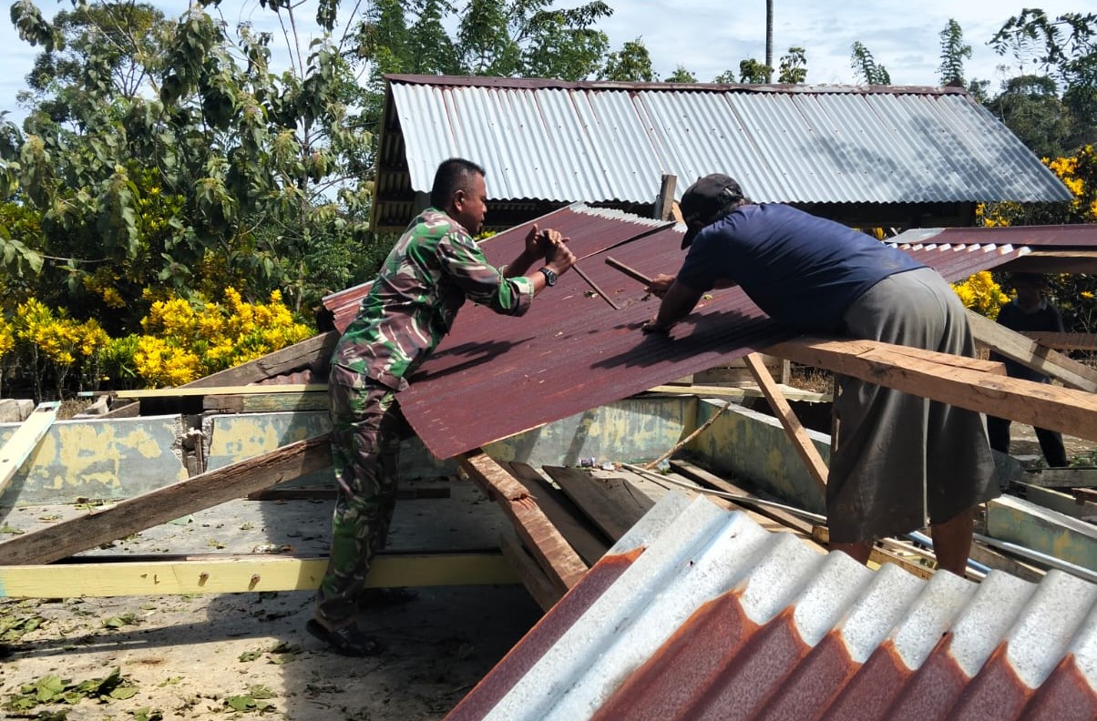 Abdya – Mewaspadai cuaca hujan disertai angin kencang, Babinsa Koramil 01/Blangpidie Kodim 0110/Abdya, Serka Sukardi Z bersama dengan Dinas Perumahan…