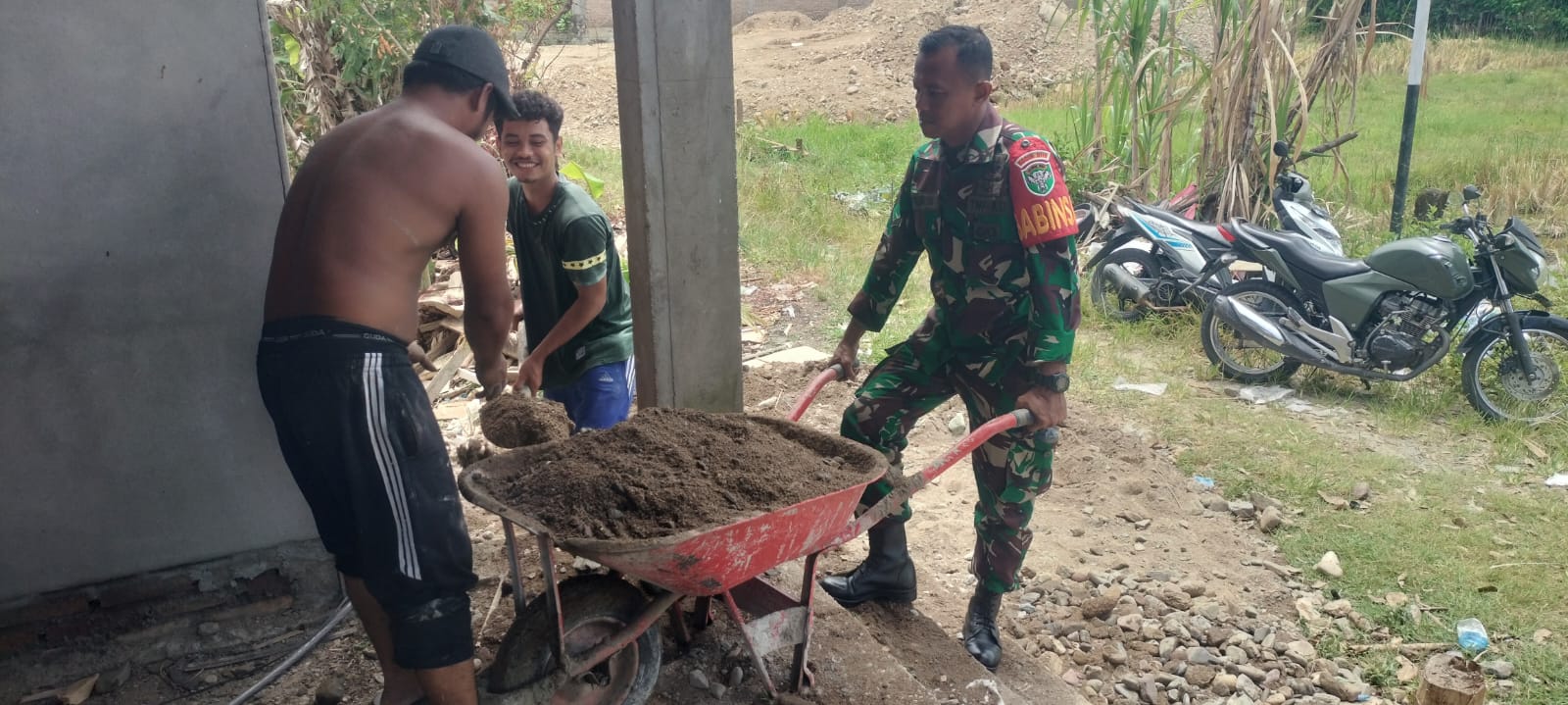 Abdya – Babinsa koramil 01/Blangpidie Serda Wirja Aswandi membantu masyarakat binaannya membuat rumah milik pak Mahdi di Desa Kuta Tinggi,…