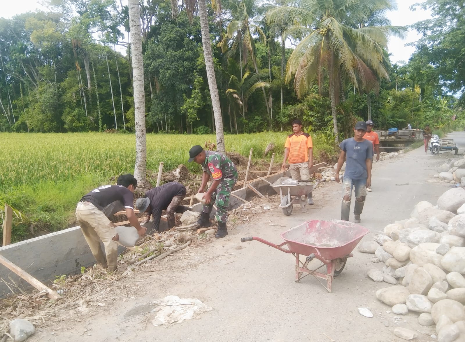 Abdya – Membangun infrastruktur di Desa,Babinsa Koramil 06/Manggeng,Kodim 0110/Abdya,Sertu M.A.Aritonang bersama-sama dengan warga melaksanakan karya Bhakti dalam pembangunan talud jalan…