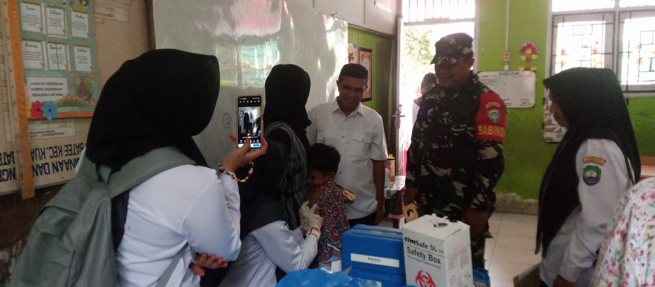Abdya – Babinsa Koramil 02 Kuala Batee Kodim 0110/Abdya, Koptu Ali Sukiman, mendampingi tenaga kesehatan (Nakes) Puskesmas Kuala Batee dalam…