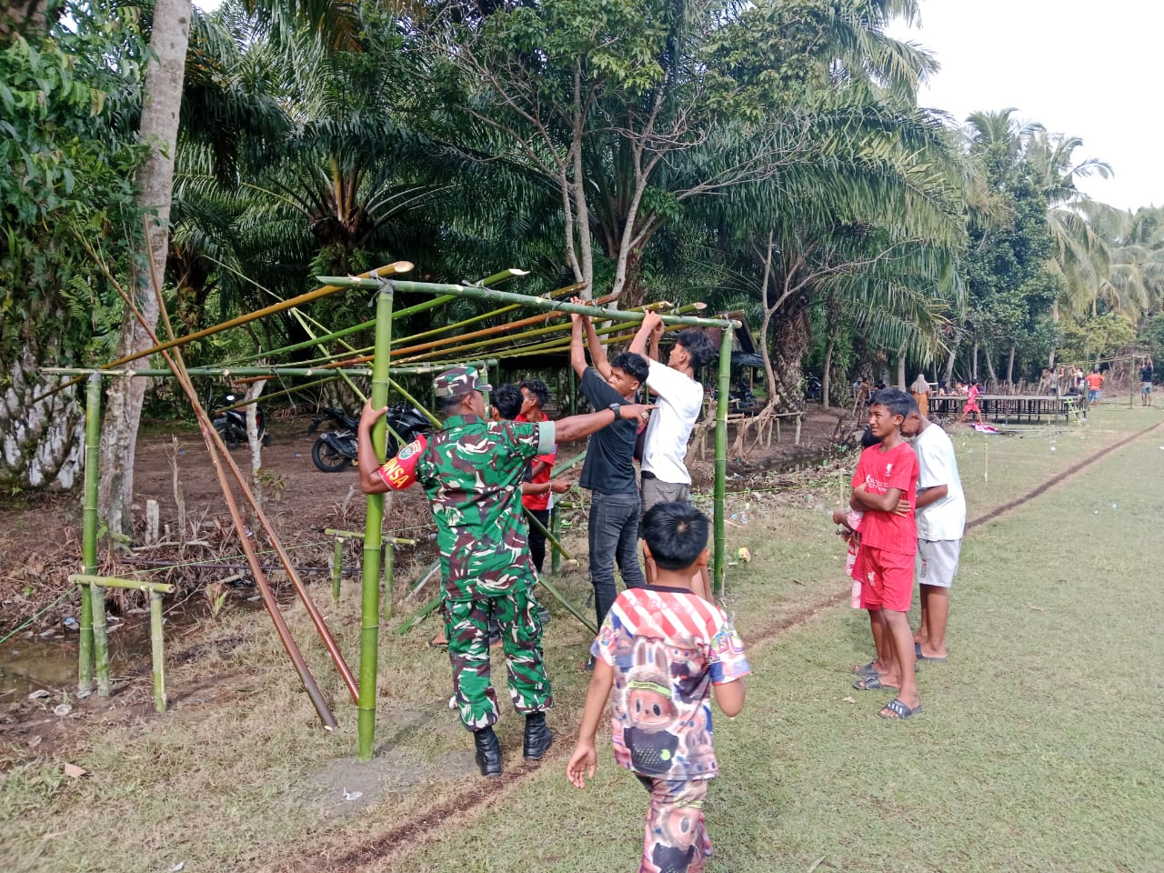 Abdya – Serka Musmulyadi, Babinsa Koramil 03/Jeumpa, Kodim 0110/Abdya membantu warga dalam kegiatan gotong royong membersihkan semak-semak di pinggiran desa…