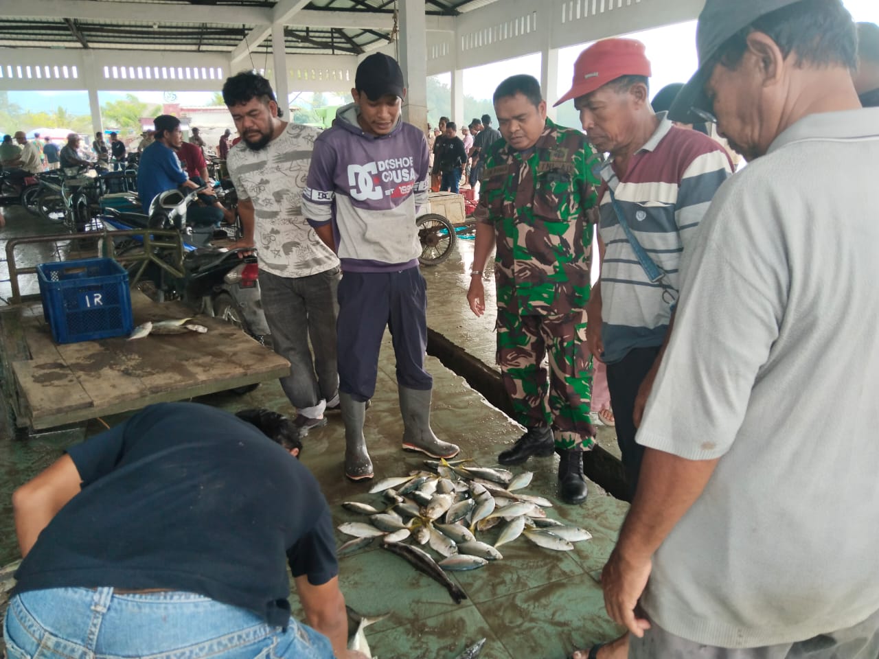 Abdya – Babinsa Koramil 04/Susoh Kodim 0110/Abdya Serka Joni Warman meninjau aktivitas penjualan ikan laut di pusat pelelangan ikan (PPI)…