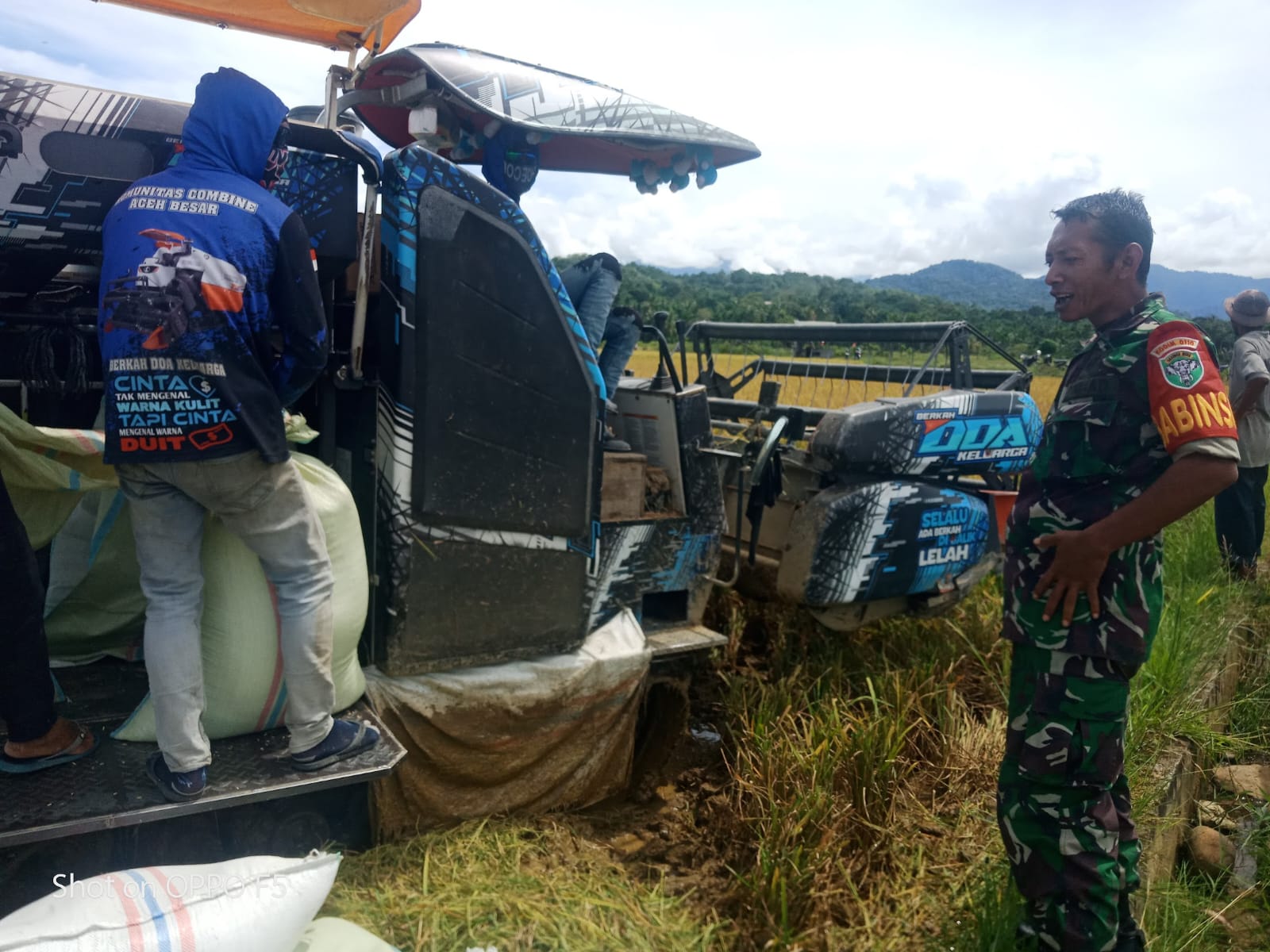 Abdya – Babinsa Koramil 09/Lembah Sabil Kodim 0110/Aceh Barat Daya Serda Yasir Arafat melaksanakan pendampingan panen padi menggunakan mesin modern,…