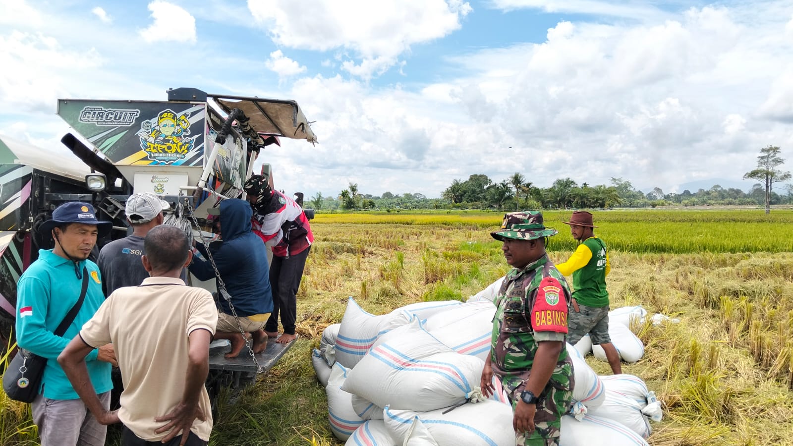 Abdya – Babinsa Koramil 07/Babahrot Kodim 0110/Abdya Serma Novriyandi monitoring kegiatan panen padi di pesawahan Desa Gunung Samarinda Kecamatan Babahrot,…