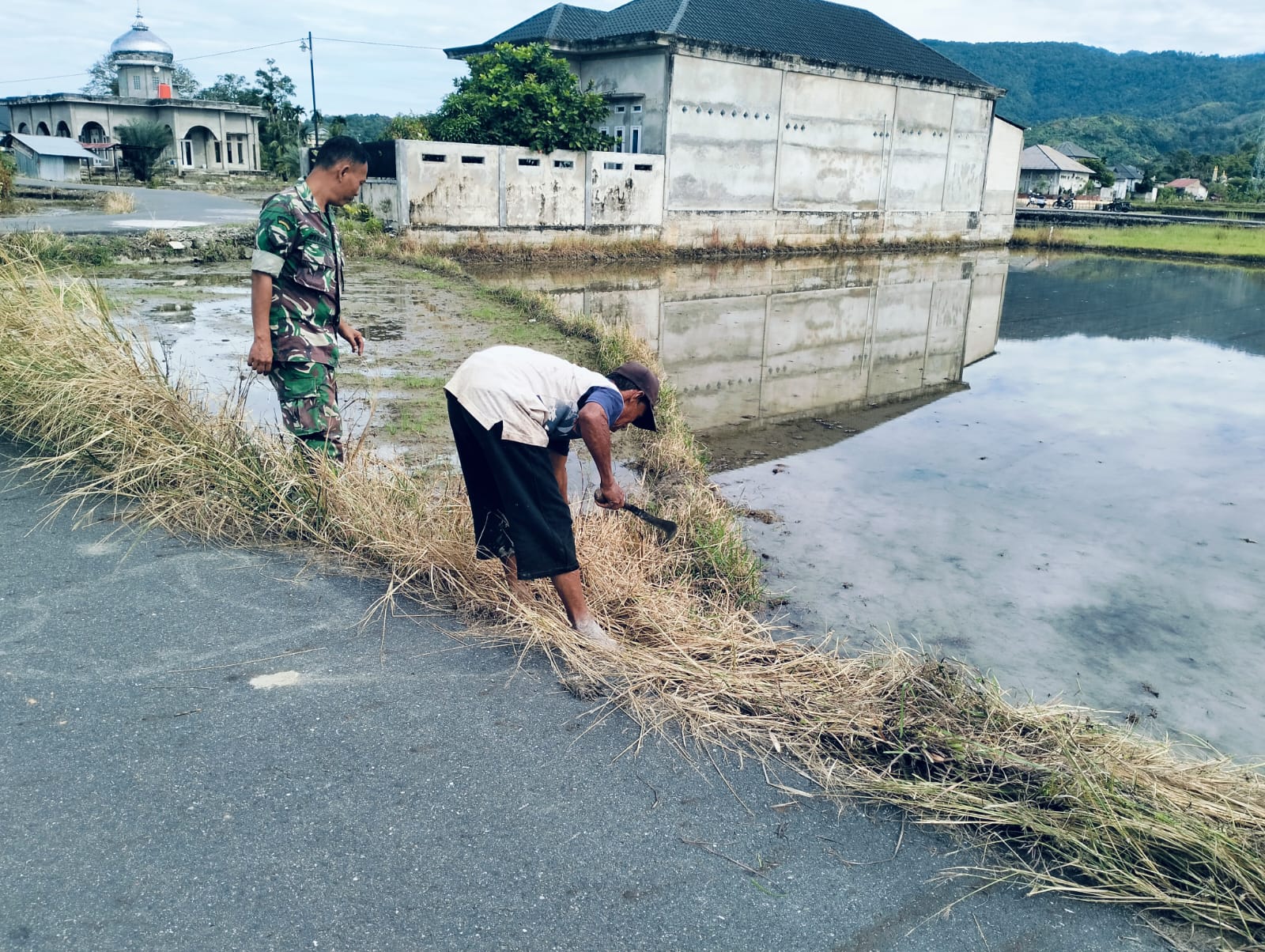Abdya – Babinsa Koramil 01/Blangpidie Kodim 0110/ Abdya Serda Dapit Cristian Cek saluran irigasi bersama petani di Desa Baharu Kecamatan…