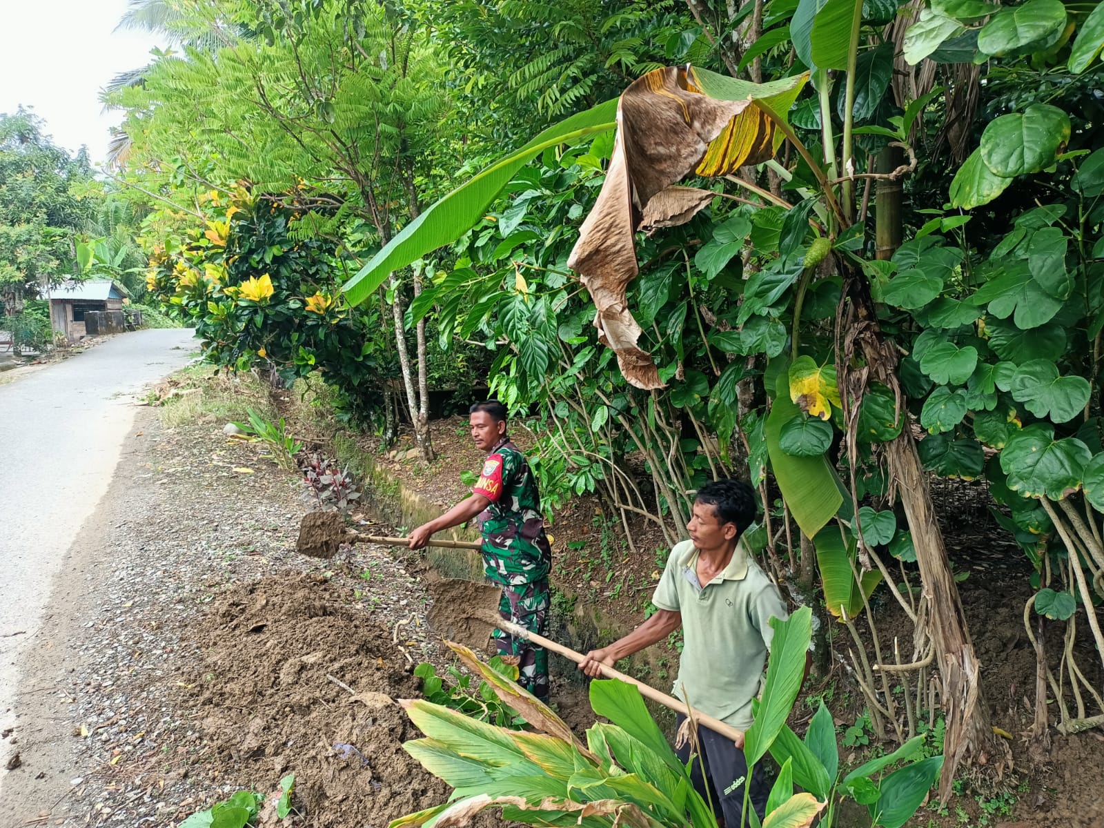 Abdya – Babinsa Serda Hamdani Koramil 05/Tangan-Tangan Kodim 0110/Abdya bersama warga melaksanakan kegiatan gotong royong membersihkan selokan, di Desa Drien…