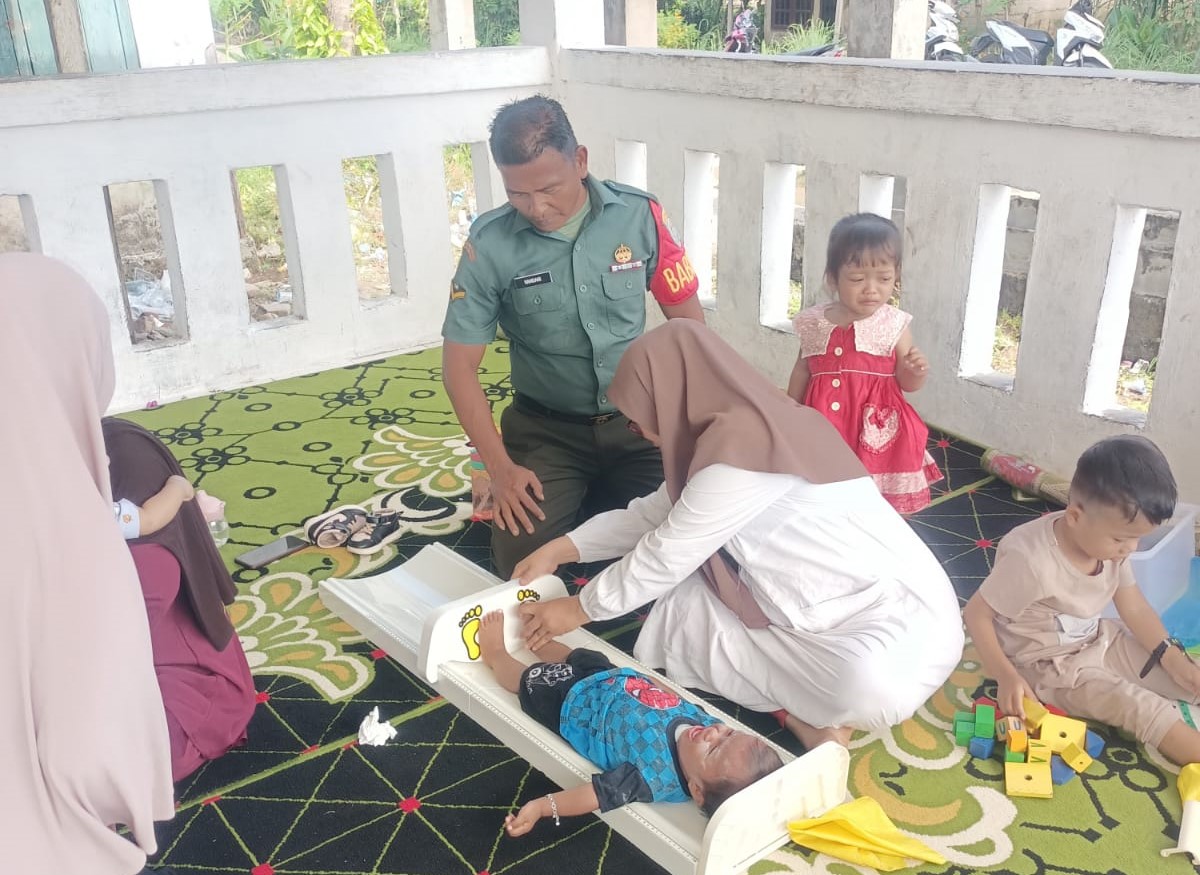 Abdya – Babinsa Desa Drien Jalo Koramil 05/Tangan-Tangan Kodim 0110/Abdya Serda Hamdani melaksanakan pendampingan kegiatan Posyandu Teratai kepada Balita dan…