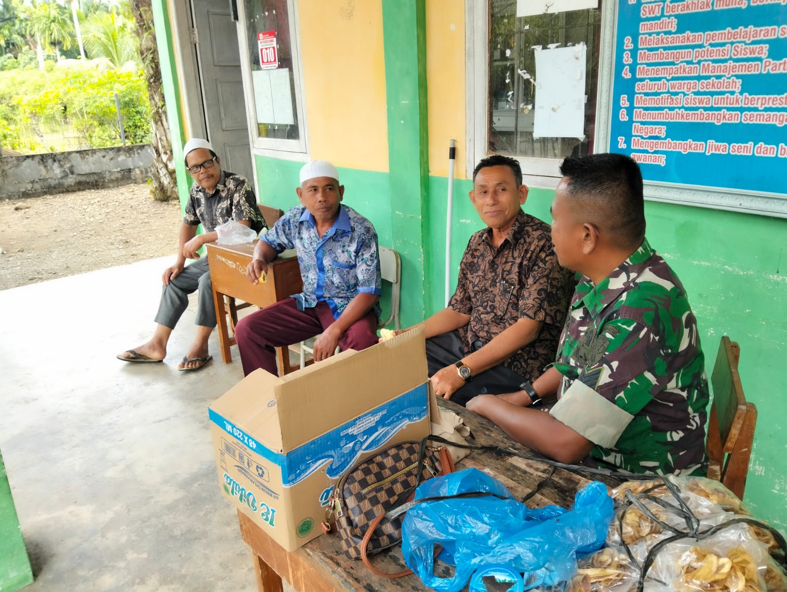 Abdya – Tangan-Tangan – Babinsa Desa Suak Nibong Koramil 05/Tangan-Tangan Kodim 0110/Abdya Serma Novrizal melaksanakan komsos bersama Kepala Sekolah dan…