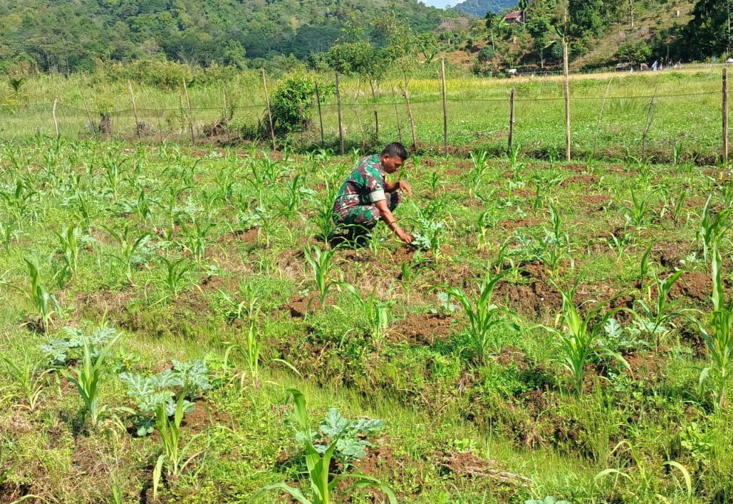 Abdya – Babinsa Koramil 05/Tangan-Tangan Kodim 0110/Abdya, Serda Hamdani melaksanakan kegiatan membantu warga desa binaan memupuk jagung milik Bapak Firman,…