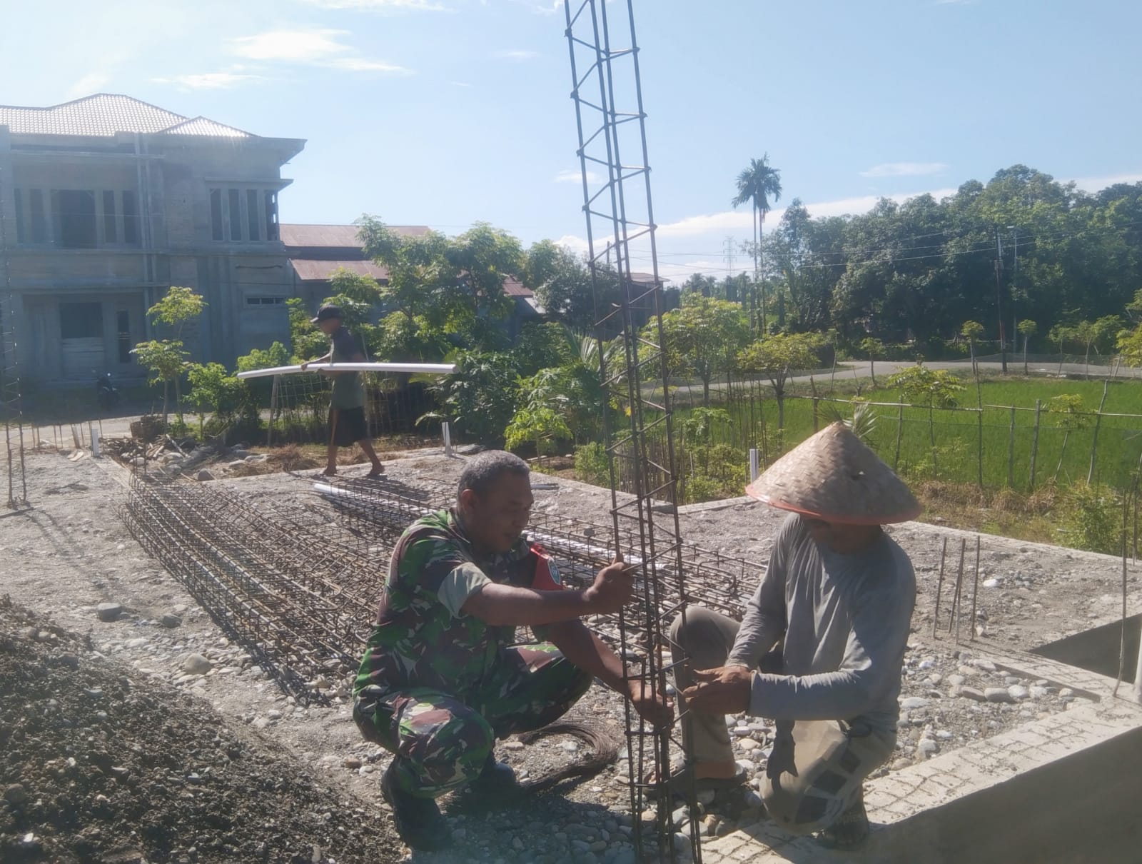 Abdya – Bintara Pembina Desa (Babinsa) Koramil 06/Manggeng Sertu M.A.Aritonang membantu warga binaan dalam pembangunan rumah warga di Desa Tengah,…