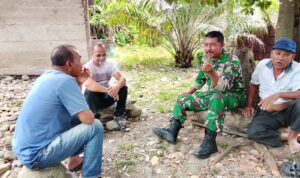 Abdya – Babinsa Koramil 01/Blangpidie Kodim 0110/ Abdya Serda Dapit Cristian Komsos bersama perangkat desa di Desa Pasar Kecamatan Blangpidie…