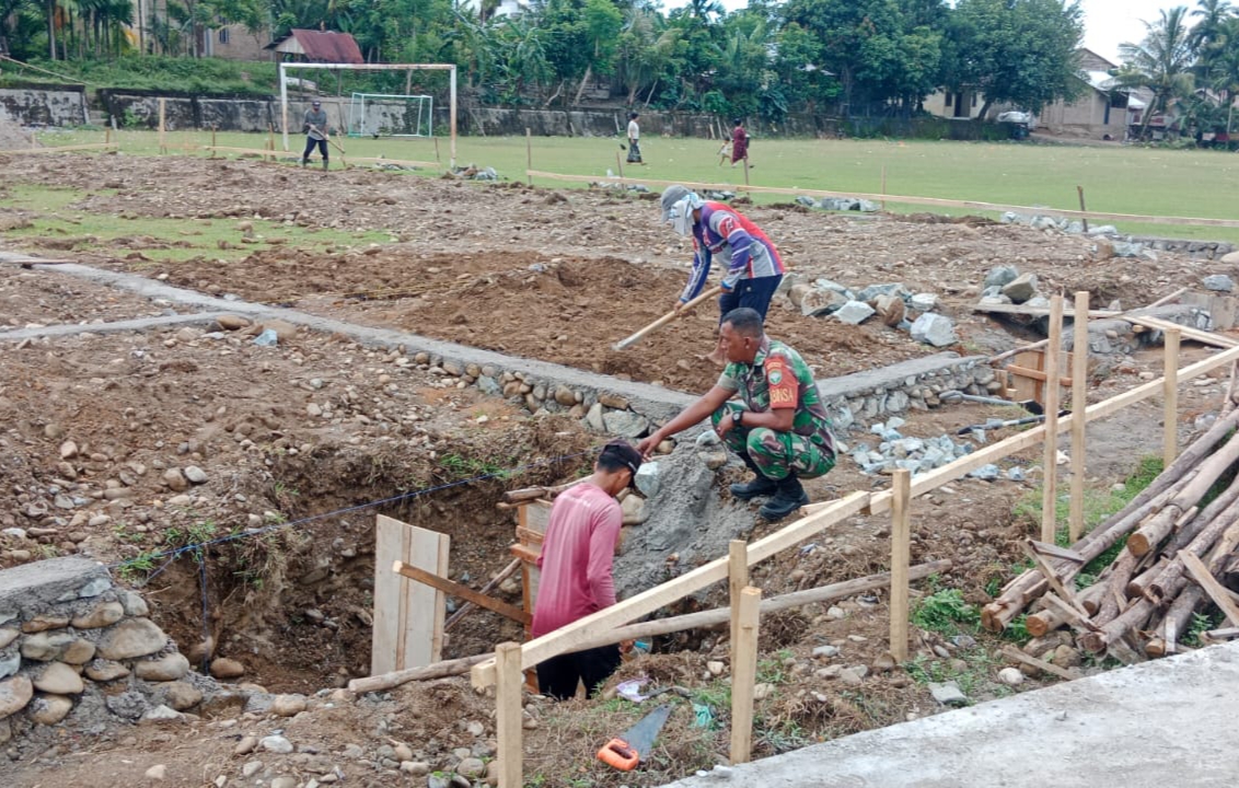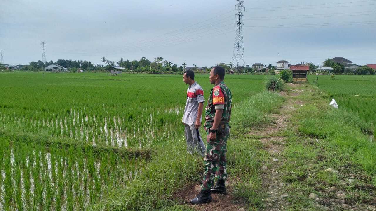 Abdya – Babinsa Koramil 01/Blangpidie Kodim 0110/ Abdya Serda Wirja Aswandi Komsos dengan perangkat desa di Desa Panton Kecamatan Blangpidie Kabupaten Abdya.Senin (13/10/2025).