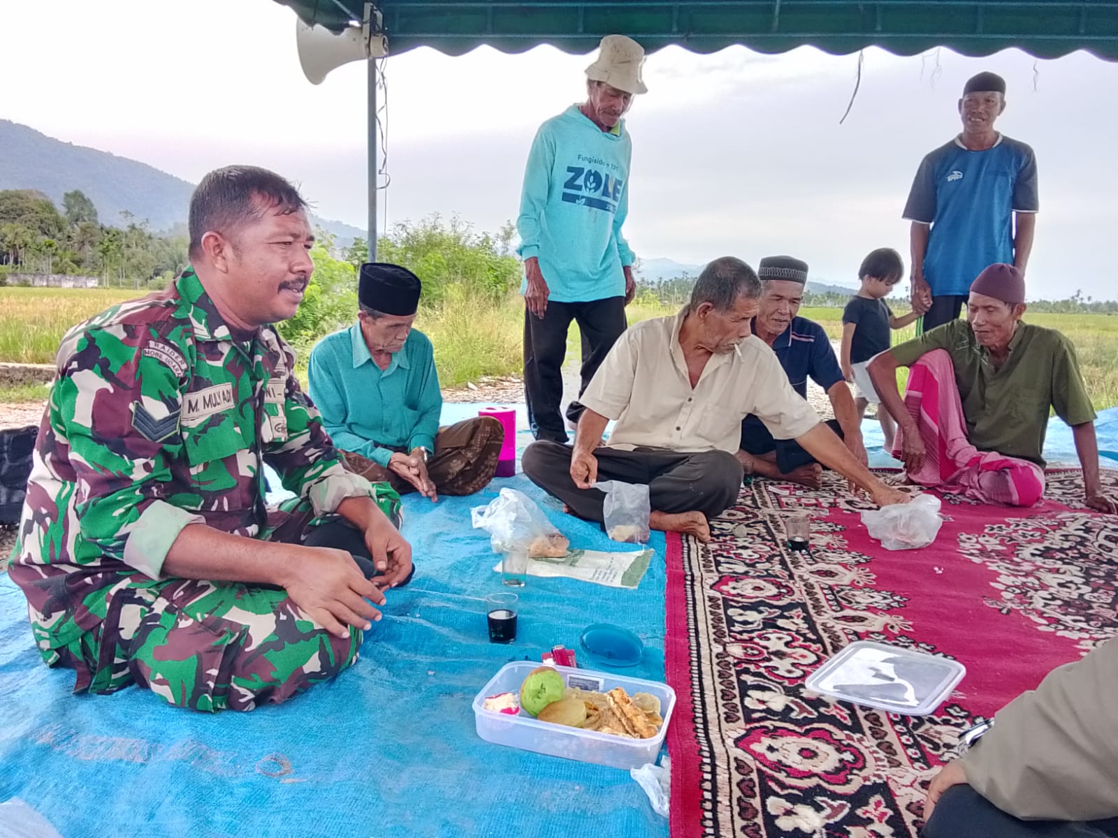 Abdya – Babinsa Koramil 03/ Jeumpa Serka Mus Mulyadi, melaksanakan kegiatan komunikasi sosial dengan para kejrun Blang di acara turun…