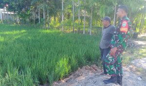 Abdya– Babinsa Koramil 01/Blangpidie Kodim 0110/Abdya Sertu Joni Warman membantu warga binaan mengontrol perkembangan budidaya tanaman cabai, di Desa Keude…