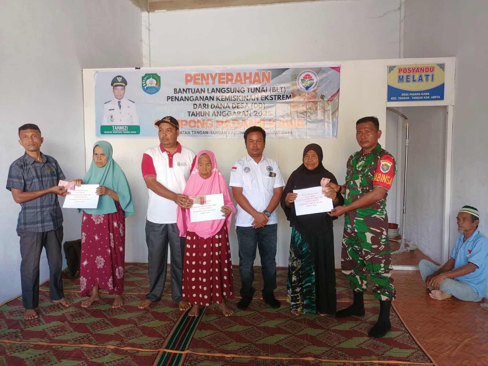 Abdya – Babinsa Koramil 05/Tangan-Tangan Kodim 0110/Abdya Serda Hamdani melaksanakan Pengawasan dan Pendampingan Kegiatan Penyaluran Dana Bantuan Langsung Tunai lansung…