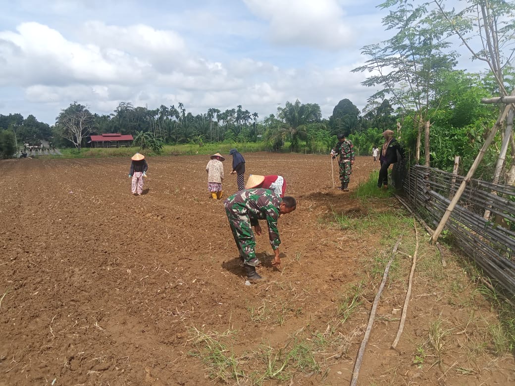 Olah Lahan Tidur, Babinsa Dan Warga Gotong Royong Tanam Jagung