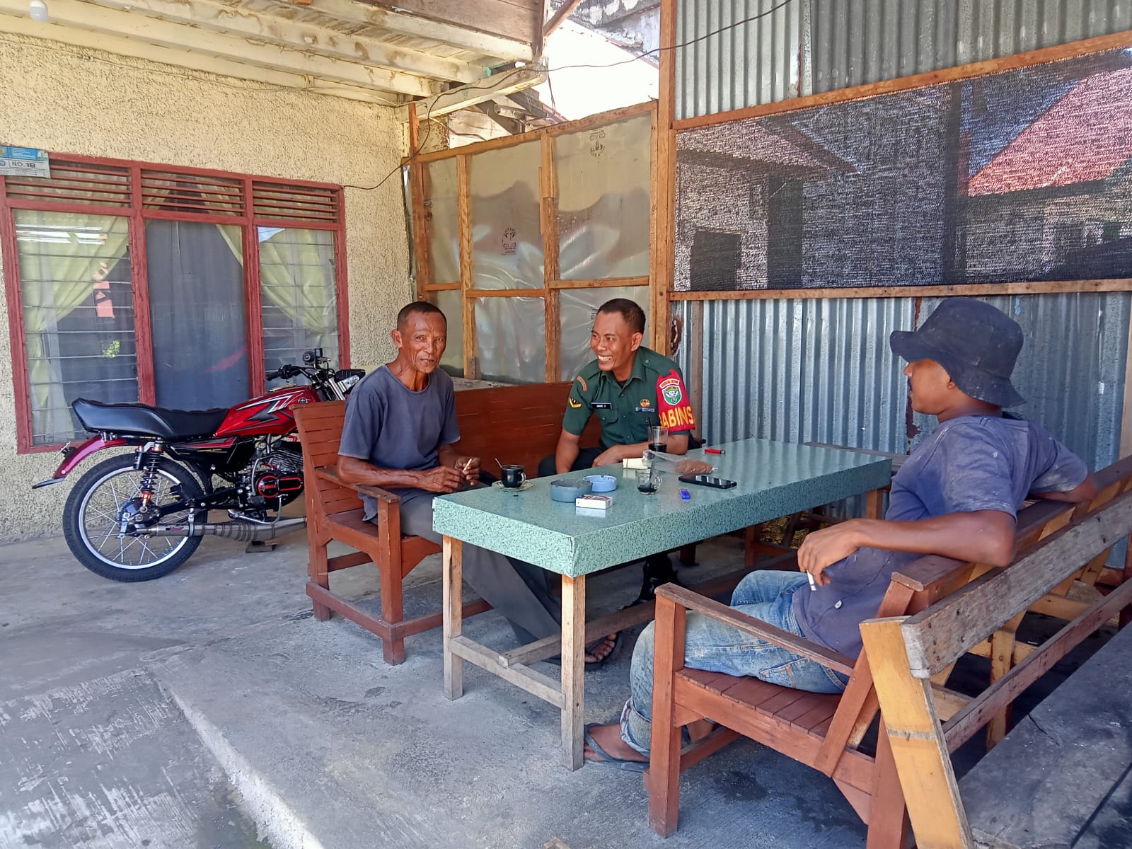 Abdya – Babinsa Koramil 03/Jeumpa Kodim 0110/Abdya Koptu Mujiyono memberikan arahan dan masukan kepada pemuda warga binaannya untuk menghindari Judi…