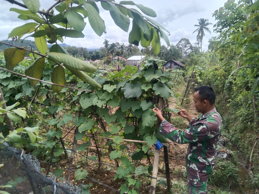Sertu Perrosa juga mengungkapkan Komsos dengan cara membantu mengecek tanaman dari ulat/hama guna memberikan motivasi dan bertukar informasi tentang tata cara pemeliharaan tanaman gambas khususnya untuk meningkatkan hasil panen agar petani mendapatkan keuntungan yang lebih baik,” Tutup Babinsa.