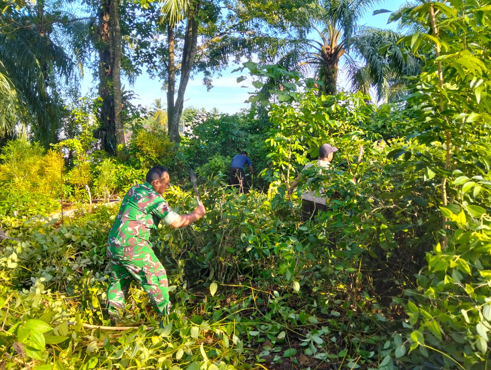 Babinsa Bersama Warga Gotong Royong Bersihkan TPU Ie Mirah Babahrot