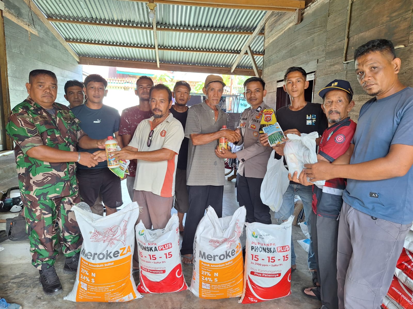 Dalam kegiatan itu, Serka Joni Warman bersama perangkat desa secara langsung menyerahkan bantuan pupuk kepada para petani yang telah terdata sebagai penerima manfaat. Penyaluran berlangsung tertib dan lancar dengan melibatkan unsur masyarakat setempat.