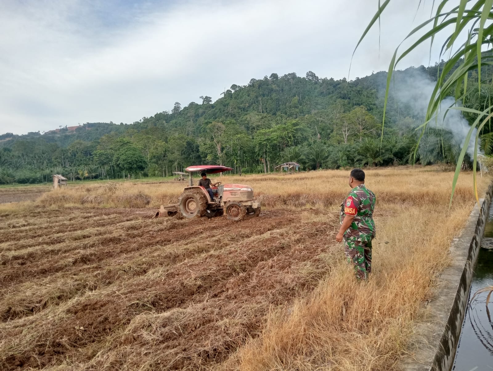 Abdya – Babinsa Koramil 07/Babahrot Kodim 0110/Abdya Pelda Hanif mendampingi ketua kelompok tani, Warto (45) mengecek kematangan masa padi, di Desa Rukun Damai Kecamatan Babahrot, Selasa (30/9/2025).