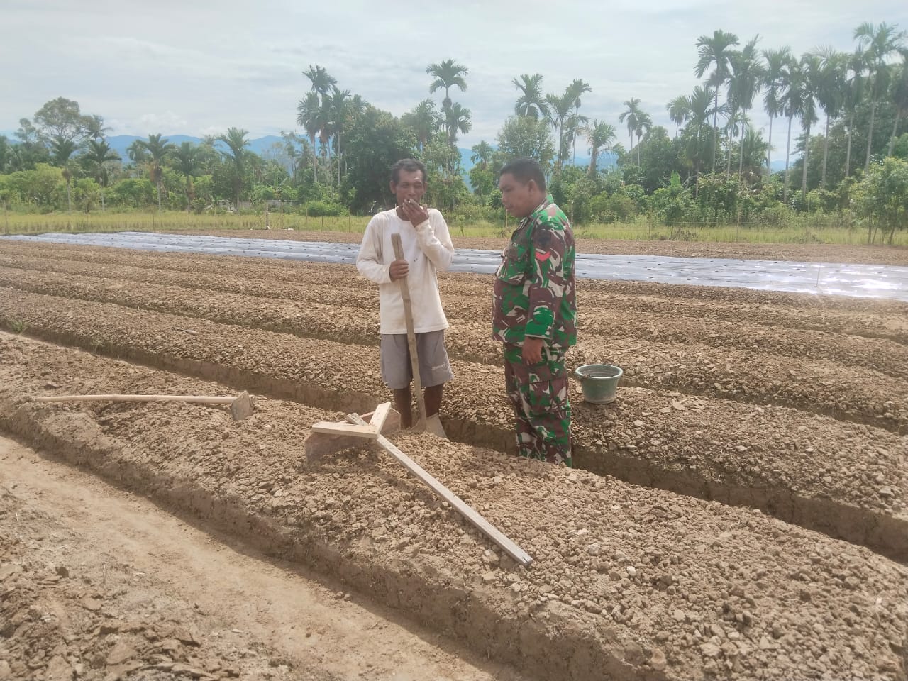 Abdya –  Babinsa Koramil 04/Susoh Kodim 0110/Abdya Koptu Zulfitriandi mendampingi petani binaan merampungkan penyiapan lahan budidaya tanaman cabai, di Desa Padang Baru Kecamatan Susoh, Senin (6/4/2026).