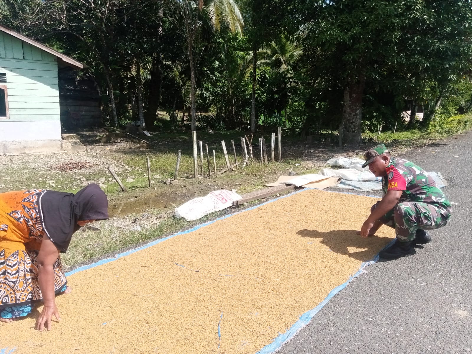 Dalam pengamatan tersebut, Koptu Johan dan penyuluh turun langsung ke sawah memeriksa kondisi tanaman padi, mulai dari kelancaran sistem perairan, indikasi serangan hama, serta tingkat kesuburan tanaman.