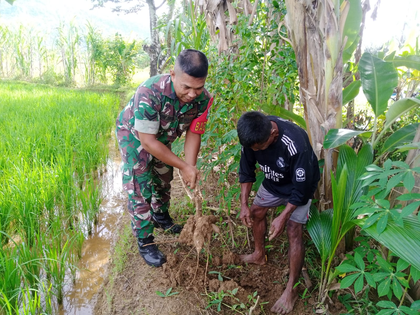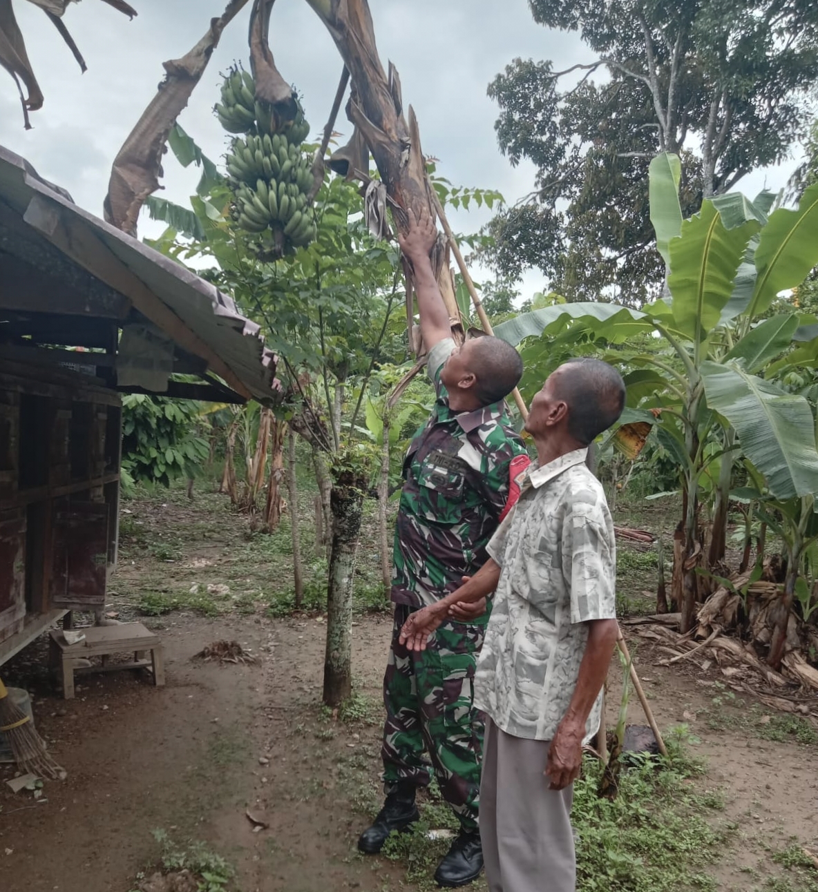 Abdya – Untuk memberikan tambahan biaya belanja untuk sehari-hari, seringkali ibu-ibu mengeluh karena tidak ada nya lapangan pekerjaan atau tidak tau cara untuk membuat usaha sampingan yang bisa menutup kebutuhan sehari-hari, karena ada keluhan itulah Babinsa Koramil 03 Jeumpa Koptu Ismuhadi memberikan jalan dengan cara mengajak Ibu Ramlah berjualan sayur di depan rumahnya yang kebetulan di depan Koramil 03/Jeumpa, desa Alue Sungai Pinang Kec Jeumpa Kab Aceh Barat Daya, Minggu (27/04/2025)