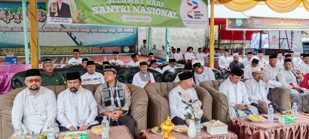 Abdya – Babinsa (Bintara Pembina Desa) Desa Meurandeh, Kecamatan Lembah Sabil, turut hadir dalam acara peringatan Hari Santri yang digelar di Pondok Pesantren Jabal Nur Jadid, di Jalan Nasional Desa Meurandeh, Kecamatan Lembah Sabil,Kabupaten Aceh Barat Daya, Pada Rabu (22/10/2025).