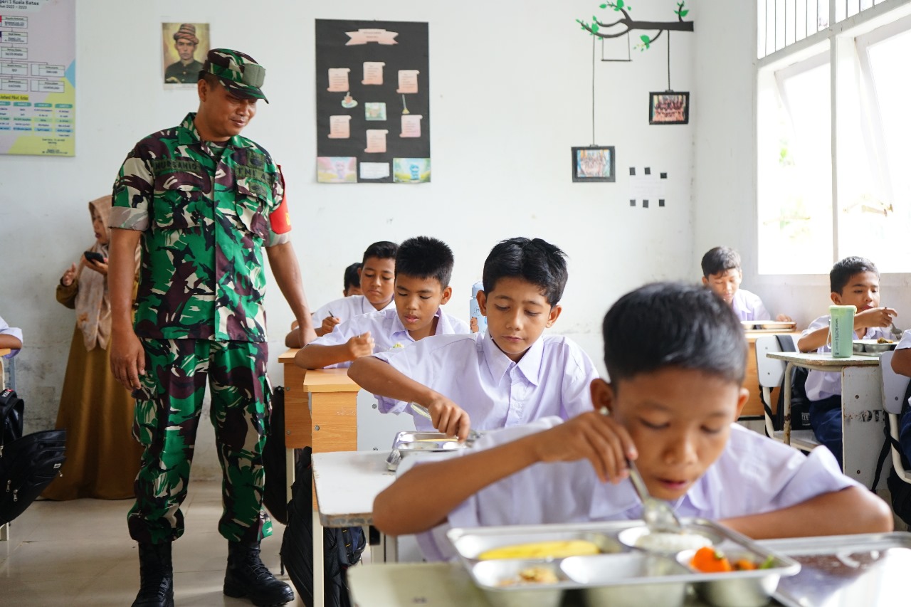 Pantauan, di berbagai sekolah, suasana keceriaan tampak saat para siswa menikmati menu sehat yang disediakan. Babinsa bersama para guru turut mendampingi proses makan bersama, menciptakan semangat kebersamaan sekaligus memberikan edukasi mengenai pentingnya pola makan bergizi.