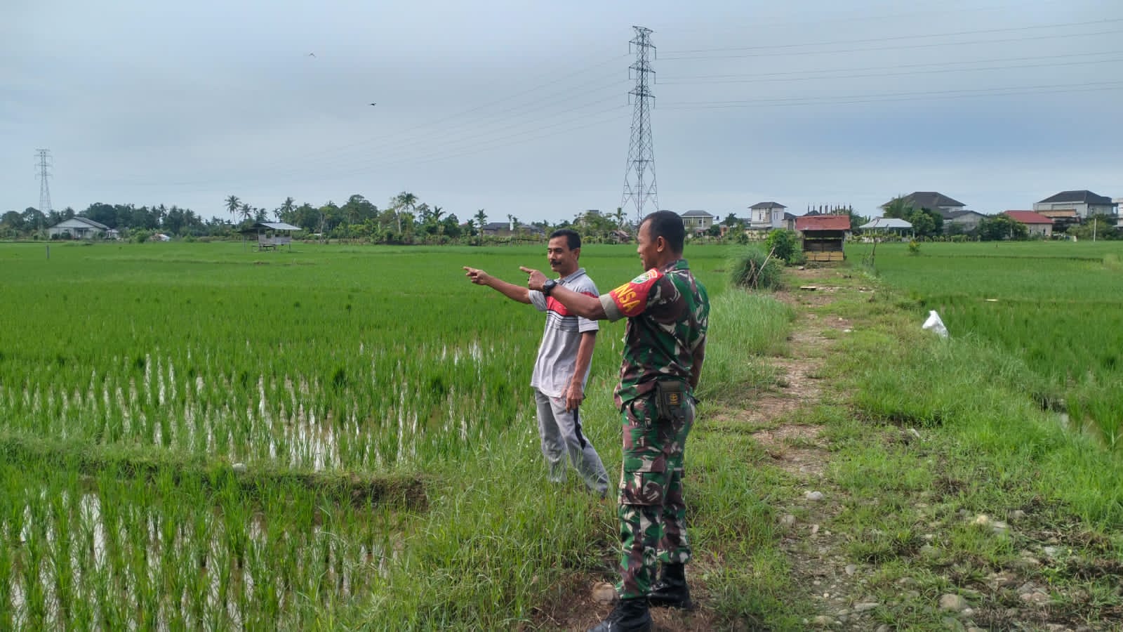 Abdya – Babinsa Koramil 01/Blangpidie Kodim 0110/ Abdya Serda Wirja Aswandi dampingi petani mengecek tanam padi di Desa Panton raya Kecamatan Blangpidie Kabupaten Abdya, Selasa (9/12/2025)