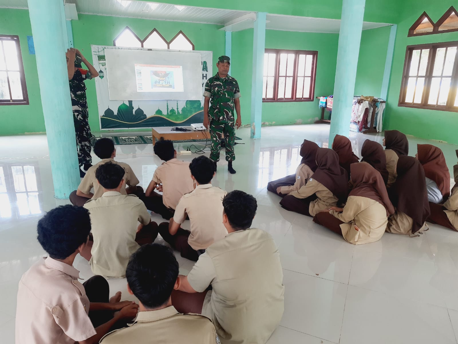 Kegiatan tersebut merupakan bagian dari pembinaan teritorial Babinsa dalam mendekatkan diri dengan generasi muda serta menanamkan nilai kebangsaan sejak dini. Dalam penyampaiannya, Sertu Aris Muslim menjelaskan secara detail kepada para siswa tentang pentingnya memahami dan mengamalkan nilai-nilai Pancasila serta ajaran agama sebagai fondasi moral dalam kehidupan sehari-hari.