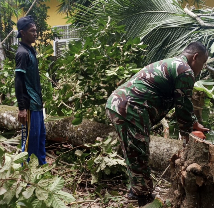 Abdya – Babinsa Koramil 02 Kuala Batee Kodim 0110/Abdya, Serda Samijo, melaksanakan kegiatan pemantauan wilayah dengan menyambangi salah satu panglong kayu di Desa Lhok Gajah, Kecamatan Kuala Batee, Kabupaten Aceh Barat Daya. Dalam kunjungannya, Babinsa tidak hanya berdialog dengan pemilik usaha yang sedang membuat berbagai produk seperti lemari, meja, dan tempat tidur, tetapi juga turut membantu secara fisik dalam menata bahan baku kayu serta produk jadi Abdya, Sabtu (20/9/2025).