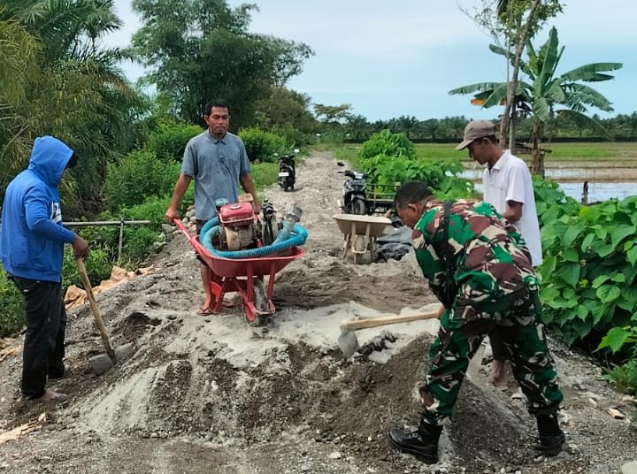 Abdya – Babinsa Koramil 06/Manggeng, Sertu M. A. Aritonang, melaksanakan kegiatan membantu masyarakat dalam pembuatan pagar rumah milik Bapak Karni di Desa Pante Cermin, Kecamatan Manggeng, Kabupaten Abdya, Rabu (17/12/2025)