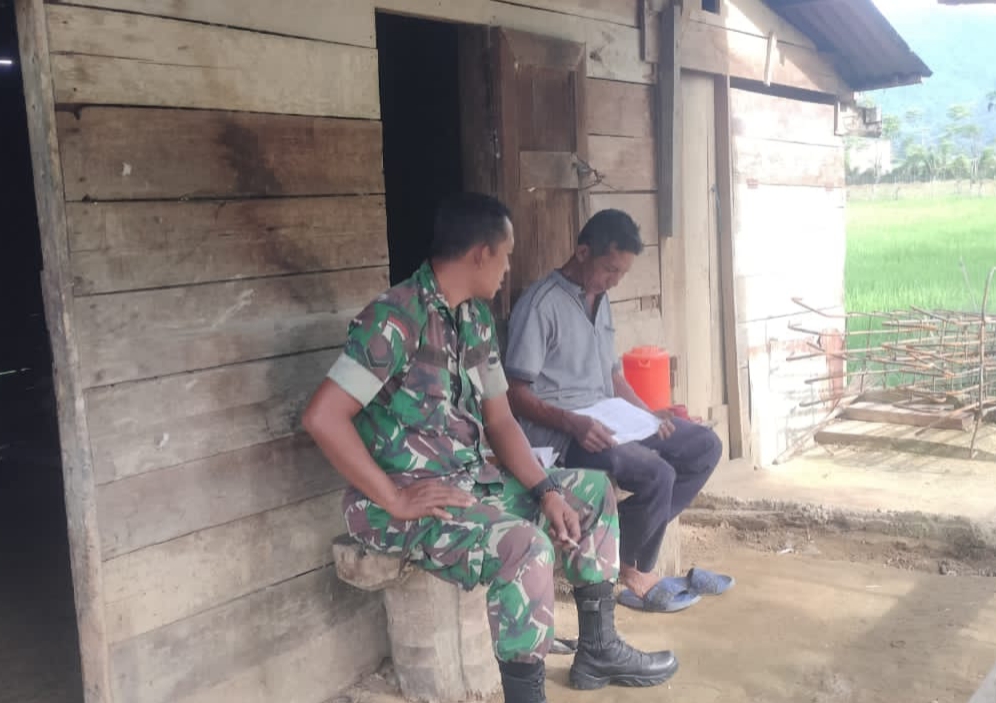 Abdya – Babinsa Koramil 01/Blangpidie Kodim 0110/ Abdya Serda Iwan Setiawan Komsos bersama perangkat desa di Desa Kuta Bahagia, Kecamatan Blangpidie, Kabupaten Abdya, Senin (29/12/2025)