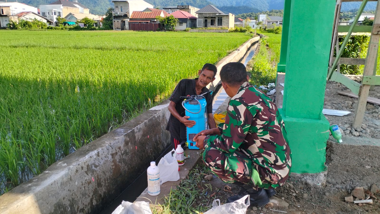 Capai Hasil Maksimal, Babinsa Dampingi Petani Semprot Padi
