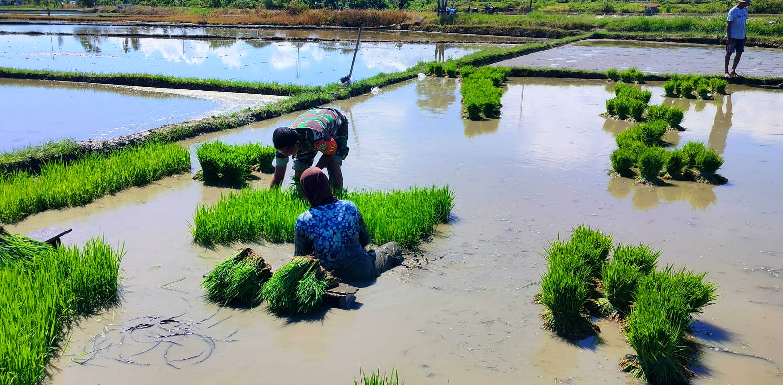 Abdya – Babinsa Koramil 01/Blangpidie Kodim 0110/ Abdya Serda Wirja Aswandi bantu petani cabut bibit padi siap tanam di Desa…