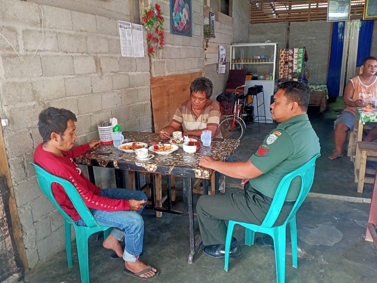 Abdya- Babinsa Koramil 03/Jeumpa Kopka Defi Mulyadi melaksanakan Komunikasi Sosial (Komsos) dengan warga pendatang di warung kopi milik Bapak Iskandar…