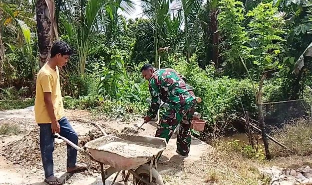 Abdya – Kegiatan yang dilakukan oleh Babinsa Koramil 03/Jeumpa, Sertu Mimi Suwardi, dalam membantu pembangunan rumah warga di Desa Ladang…