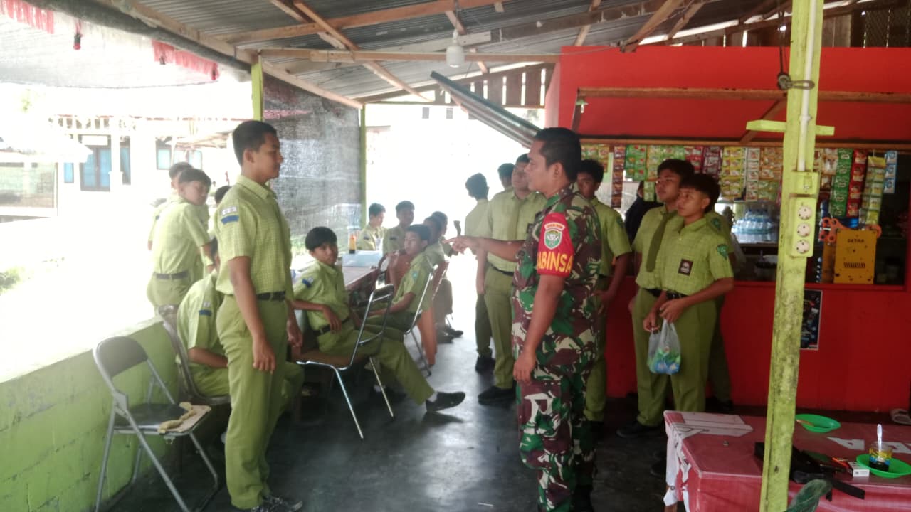 Abdya – Berkunjung dan memberikan edukasi kepada siswa- siswi pada saat jam istirahat di kantin sekolah,Babinsa Koramil 03 Jeumpa Koptu…