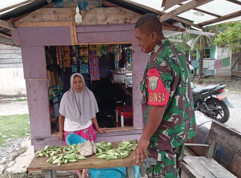 Abdya – Babinsa Koramil 03/Jeumpa, Kodim 0110/Abdya Serka Aidi, melaksanakan komunikasi sosial (Komsos) dengan mengunjungi rumah warga binaanya Ibu Salami,…