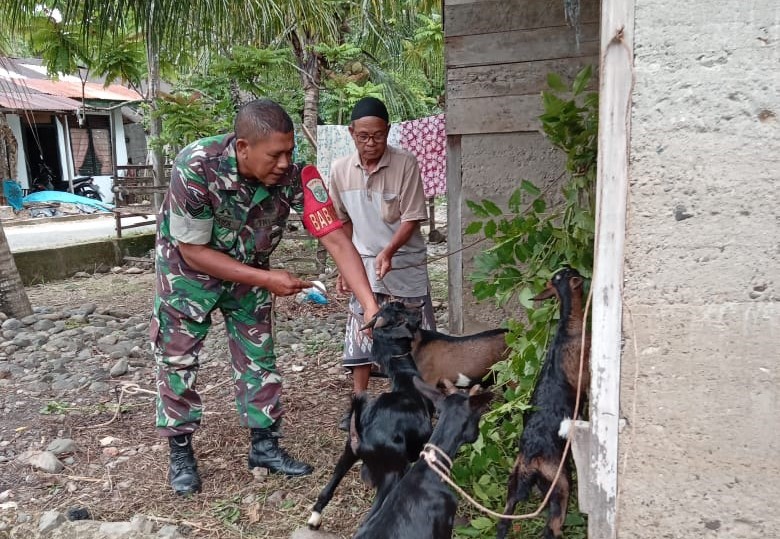 Abdya – Babinsa Koramil 03/Jeumpa, Kodim 0110/Abdya Serka Aidi, membantu warga desa binaannya, Pak Muktar, mengatasi masalah penyakit mata pada…