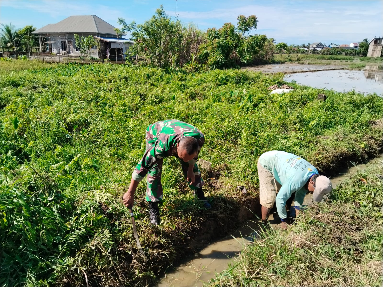 Babinsa Susoh Bantu Petani Sterilisasi Pengairan Sawah