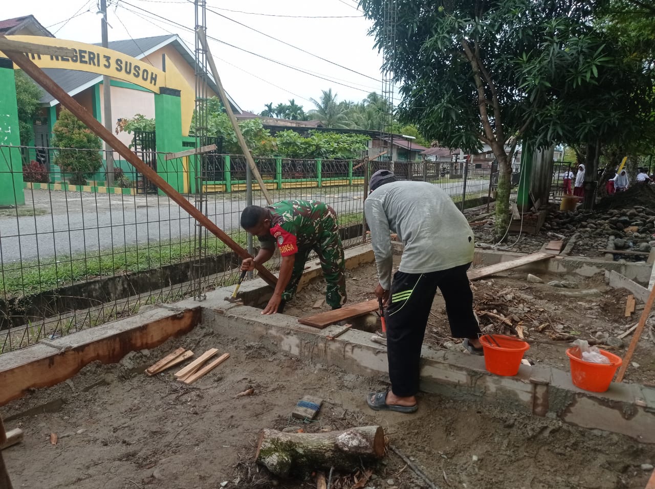 Abdya – Babinsa Koramil 04/Susoh Kodim 0110/Abdya Serka Joni Warman membantu warga binaannya membangun kios sederhana di Desa Pawoh Kecamatan…