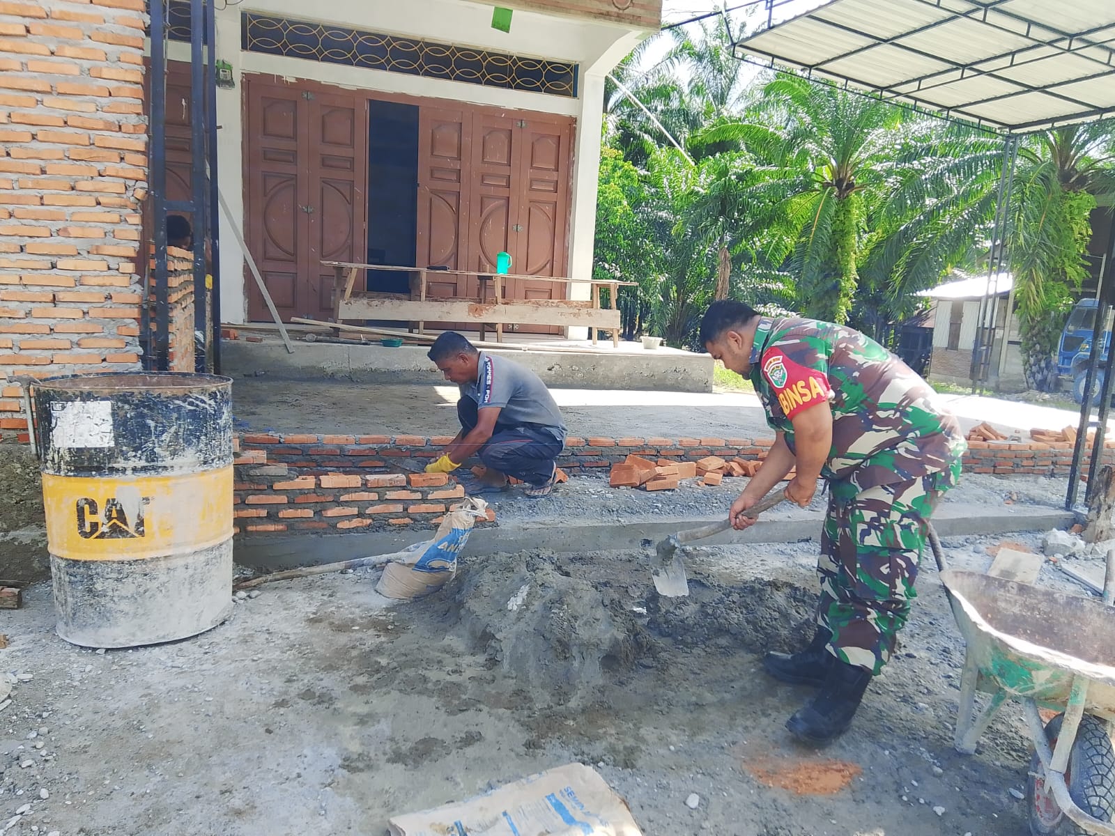 • Babinsa Jeumpa Berbagi Tenaga Bantu Warga Binaan Bangun Rumah
