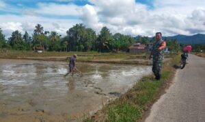 Abdya – Babinsa Koramil 09/Lembah Sabil, Koptu Saiful Syaputra, melaksanakan pendampingan pertanian dalam kegiatan pengolahan lahan untuk penyemaian bibit padi,…