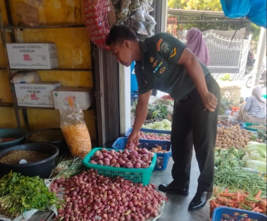 Abdya- Babinsa Koramil 06/Manggeng Kodim 0110/Abdya Serda Sukimin, memastikan kestabilan harga sembako di lokasi pasar tradisional Desa Kedai Kec. Manggeng…