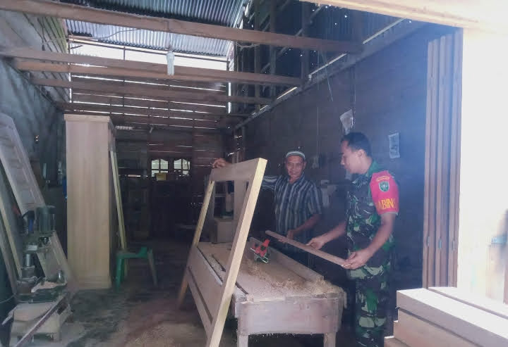 Dalam kesempatan tersebut, Babinsa turun langsung mengunjungi lokasi usaha pengrajin kayu yang memproduksi berbagai perabot rumah tangga seperti meja, kursi, lemari, serta kusen pintu dan jendela.