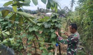 Abdya – Babinsa Koramil 01/Blangpidie Kodim 0110/ Abdya Serda Dapit Cristian bersama petani tinjau padi menguning di Desa Lam Kuta Kecamatan Blangpidie Kabupaten Abdya, Selasa (24/3/2026)
